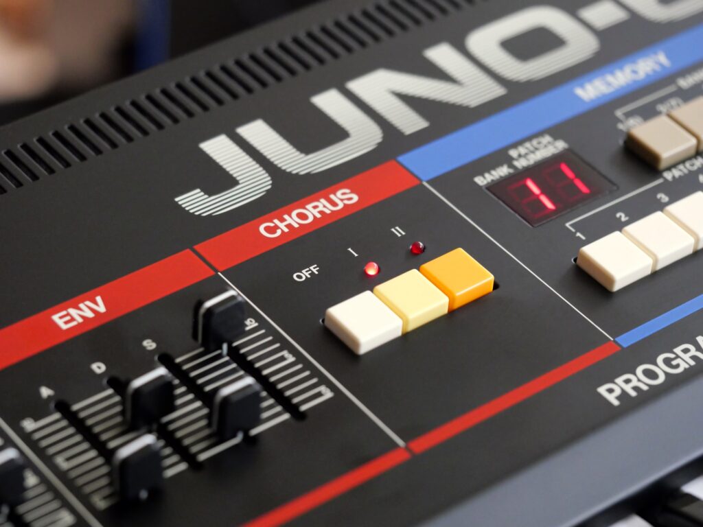 The Roland JUNO-60 was released in 1982 as the successor to the JUNO-6, adding patch memory and a DCB interface while keeping the same core sound architecture. It offered six voices, each with a DCO and suboscillator, a resonant low pass filter, a non-resonant high pass filter, and the now iconic stereo chorus. Known for lush pads, chorused strings, and rhythmic arpeggiated patterns, the JUNO-60 was used by artists such as The Cure, Eurythmics, Enya, and Animal Collective, among many others.